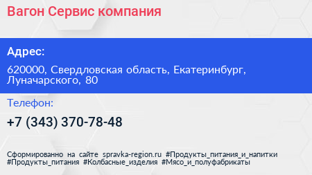 Вагон-Сервис, компания по адресу 620000, Свердловская область, Екатеринбург, Луначарского, 80 в дальнейшем Организация, размещена в следующих категориях: