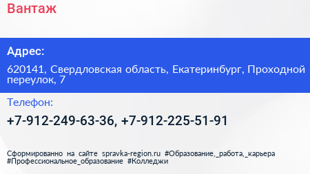 Вантаж по адресу 620141, Свердловская область, Екатеринбург, Проходной переулок, 7 в дальнейшем Организация, размещена в следующих категориях: