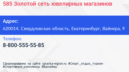 585 Золотой, сеть ювелирных магазинов по адресу 620014, Свердловская область, Екатеринбург, Вайнера, 9 в дальнейшем Организация, размещена в следующих категориях: