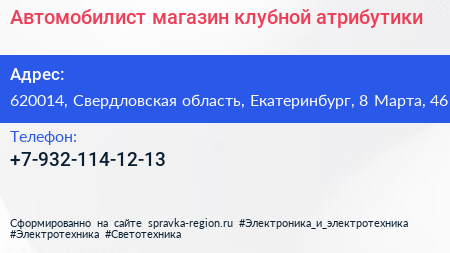 Автомобилист, магазин клубной атрибутики по адресу 620014, Свердловская область, Екатеринбург, 8 Марта, 46 в дальнейшем Организация, размещена в следующих категориях: