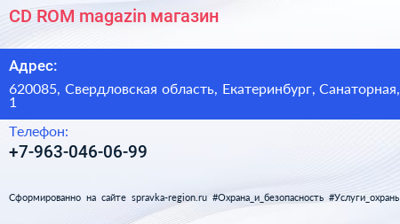 CD-ROM-magazin, магазин по адресу 620085, Свердловская область, Екатеринбург, Санаторная, 1 в дальнейшем Организация, размещена в следующих категориях: