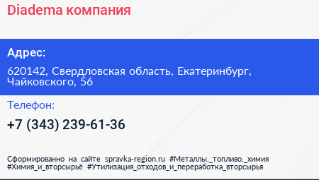 Diadema, компания по адресу 620142, Свердловская область, Екатеринбург, Чайковского, 56 в дальнейшем Организация, размещена в следующих категориях: