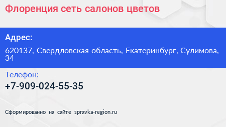 Флоренция, сеть салонов цветов по адресу 620137, Свердловская область, Екатеринбург, Сулимова, 34 в дальнейшем Организация, размещена в следующих категориях: