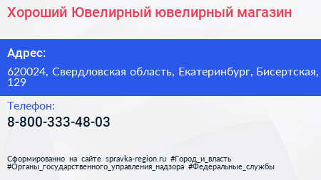 Хороший Ювелирный, ювелирный магазин по адресу 620024, Свердловская область, Екатеринбург, Бисертская, 129 в дальнейшем Организация, размещена в следующих категориях: