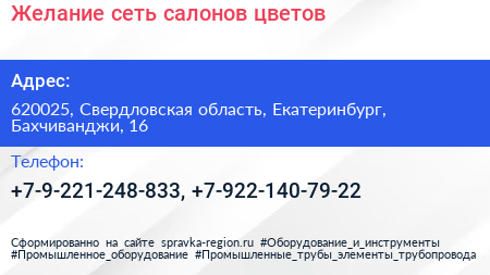 Желание, сеть салонов цветов по адресу 620025, Свердловская область, Екатеринбург, Бахчиванджи, 16 в дальнейшем Организация, размещена в следующих категориях: