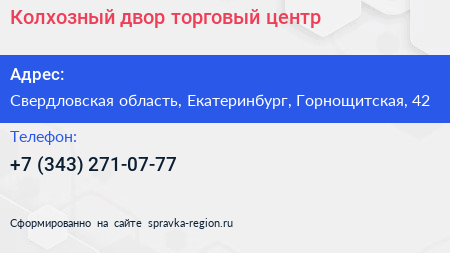 Колхозный двор, торговый центр по адресу Свердловская область, Екатеринбург, Горнощитская, 42 в дальнейшем Организация, размещена в следующих категориях: