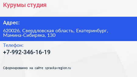 Курумы, студия по адресу 620026, Свердловская область, Екатеринбург, Мамина-Сибиряка, 130 в дальнейшем Организация, размещена в следующих категориях: