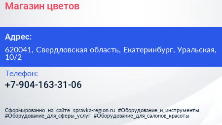 Магазин цветов по адресу 620041, Свердловская область, Екатеринбург, Уральская, 10/2 в дальнейшем Организация, размещена в следующих категориях: