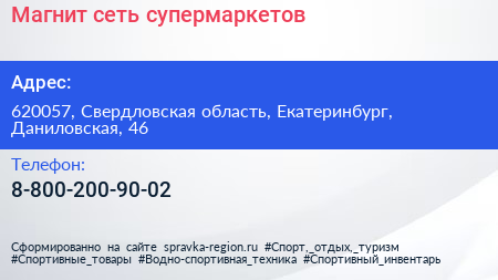 Магнит, сеть супермаркетов по адресу 620057, Свердловская область, Екатеринбург, Даниловская, 46 в дальнейшем Организация, размещена в следующих категориях: