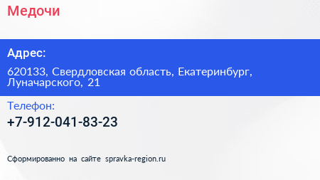 Медочи по адресу 620133, Свердловская область, Екатеринбург, Луначарского, 21 в дальнейшем Организация, размещена в следующих категориях: