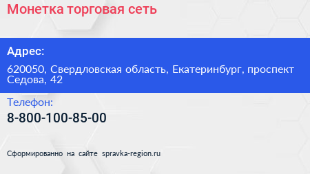 Монетка, торговая сеть по адресу 620050, Свердловская область, Екатеринбург, проспект Седова, 42 в дальнейшем Организация, размещена в следующих категориях: