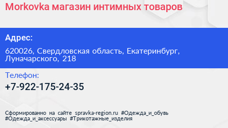 Morkovka, магазин интимных товаров по адресу 620026, Свердловская область, Екатеринбург, Луначарского, 218 в дальнейшем Организация, размещена в следующих категориях: