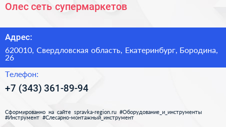 Олес, сеть супермаркетов по адресу 620010, Свердловская область, Екатеринбург, Бородина, 26 в дальнейшем Организация, размещена в следующих категориях: