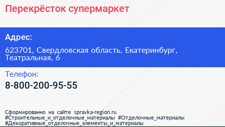 Перекрёсток, супермаркет по адресу 623701, Свердловская область, Екатеринбург, Театральная, 6 в дальнейшем Организация, размещена в следующих категориях: