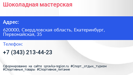 Шоколадная мастерская по адресу 620000, Свердловская область, Екатеринбург, Первомайская, 35 в дальнейшем Организация, размещена в следующих категориях: