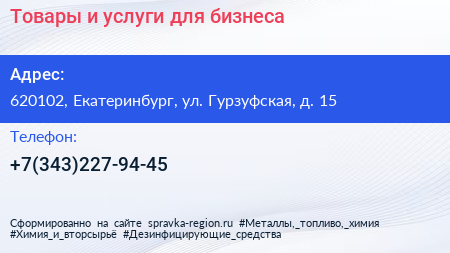 Товары и услуги для бизнеса по адресу 620102, Екатеринбург, ул. Гурзуфская, д. 15 в дальнейшем Организация, размещена в следующих категориях: