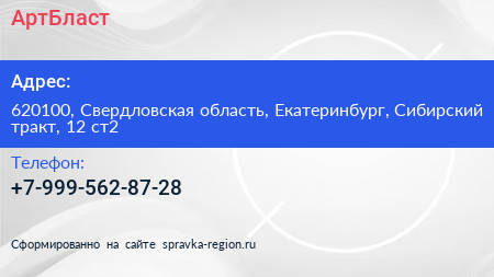 АртБласт по адресу 620100, Свердловская область, Екатеринбург, Сибирский тракт, 12 ст2 в дальнейшем Организация, размещена в следующих категориях: