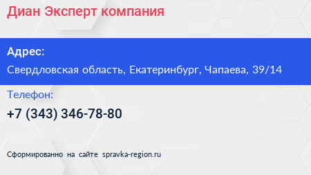Диан Эксперт, компания по адресу Свердловская область, Екатеринбург, Чапаева, 39/14 в дальнейшем Организация, размещена в следующих категориях: