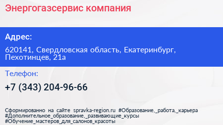 Энергогазсервис, компания по адресу 620141, Свердловская область, Екатеринбург, Пехотинцев, 21а в дальнейшем Организация, размещена в следующих категориях: