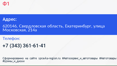 Ф1 по адресу 620146, Свердловская область, Екатеринбург, улица Московская, 214а в дальнейшем Организация, размещена в следующих категориях: