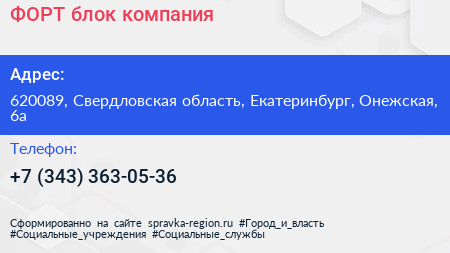 ФОРТ-блок, компания по адресу 620089, Свердловская область, Екатеринбург, Онежская, 6а в дальнейшем Организация, размещена в следующих категориях: