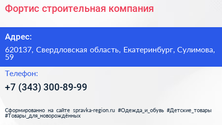 Фортис, строительная компания по адресу 620137, Свердловская область, Екатеринбург, Сулимова, 59 в дальнейшем Организация, размещена в следующих категориях: