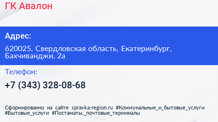ГК Авалон по адресу 620025, Свердловская область, Екатеринбург, Бахчиванджи, 2а в дальнейшем Организация, размещена в следующих категориях: