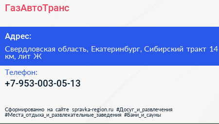 ГазАвтоТранс по адресу Свердловская область, Екатеринбург, Сибирский тракт 14 км, лит Ж в дальнейшем Организация, размещена в следующих категориях: