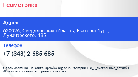 Геометрика по адресу 620026, Свердловская область, Екатеринбург, Луначарского, 185 в дальнейшем Организация, размещена в следующих категориях: