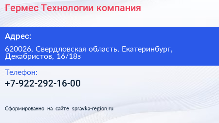 Гермес-Технологии, компания по адресу 620026, Свердловская область, Екатеринбург, Декабристов, 16/18з в дальнейшем Организация, размещена в следующих категориях: