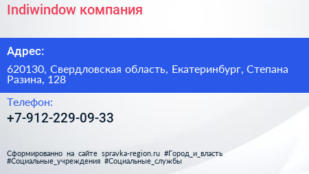 Indiwindow, компания по адресу 620130, Свердловская область, Екатеринбург, Степана Разина, 128 в дальнейшем Организация, размещена в следующих категориях: