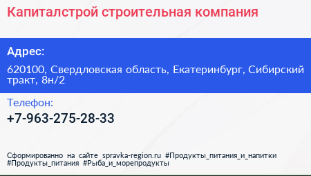 Капиталстрой, строительная компания по адресу 620100, Свердловская область, Екатеринбург, Сибирский тракт, 8н/2 в дальнейшем Организация, размещена в следующих категориях: