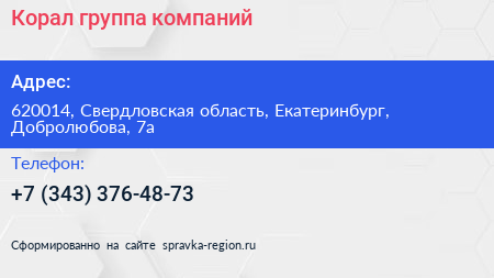 Корал, группа компаний по адресу 620014, Свердловская область, Екатеринбург, Добролюбова, 7а в дальнейшем Организация, размещена в следующих категориях: