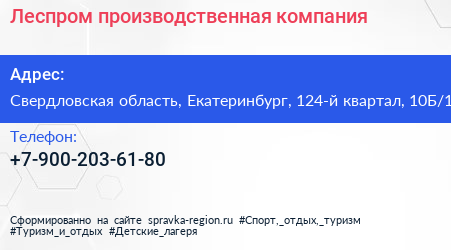 Леспром, производственная компания по адресу Свердловская область, Екатеринбург, 124-й квартал, 10Б/1 в дальнейшем Организация, размещена в следующих категориях: