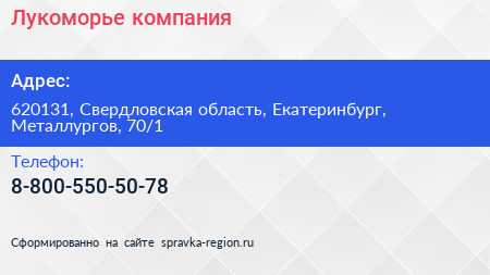 Лукоморье, компания по адресу 620131, Свердловская область, Екатеринбург, Металлургов, 70/1 в дальнейшем Организация, размещена в следующих категориях:
