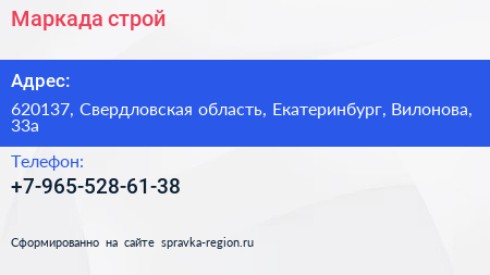 Маркада-строй по адресу 620137, Свердловская область, Екатеринбург, Вилонова, 33а в дальнейшем Организация, размещена в следующих категориях: