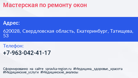 Мастерская по ремонту окон по адресу 620028, Свердловская область, Екатеринбург, Татищева, 53 в дальнейшем Организация, размещена в следующих категориях: