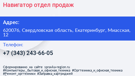 Навигатор, отдел продаж по адресу 620076, Свердловская область, Екатеринбург, Миасская, 12 в дальнейшем Организация, размещена в следующих категориях: