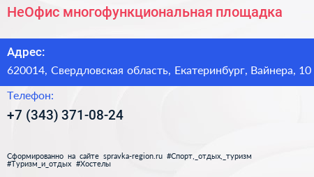 НеОфис, многофункциональная площадка по адресу 620014, Свердловская область, Екатеринбург, Вайнера, 10 в дальнейшем Организация, размещена в следующих категориях: