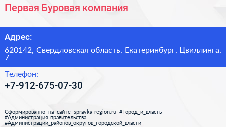 Первая Буровая компания по адресу 620142, Свердловская область, Екатеринбург, Цвиллинга, 7 в дальнейшем Организация, размещена в следующих категориях: