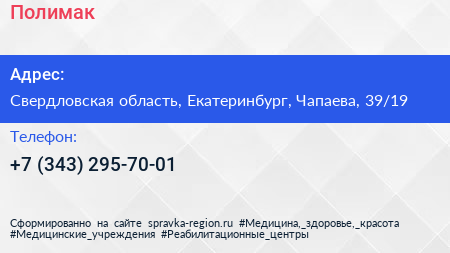 Полимак по адресу Свердловская область, Екатеринбург, Чапаева, 39/19 в дальнейшем Организация, размещена в следующих категориях: