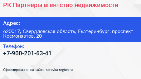 РК Партнеры, агентство недвижимости по адресу 620017, Свердловская область, Екатеринбург, проспект Космонавтов, 20 в дальнейшем Организация, размещена в следующих категориях:
