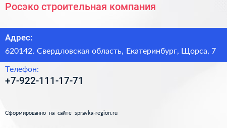 Росэко, строительная компания по адресу 620142, Свердловская область, Екатеринбург, Щорса, 7 в дальнейшем Организация, размещена в следующих категориях: