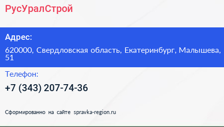 РусУралСтрой по адресу 620000, Свердловская область, Екатеринбург, Малышева, 51 в дальнейшем Организация, размещена в следующих категориях: