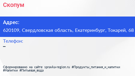 Скопум по адресу 620109, Свердловская область, Екатеринбург, Токарей, 68 в дальнейшем Организация, размещена в следующих категориях: