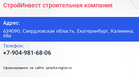 СтройИнвест, строительная компания по адресу 624090, Свердловская область, Екатеринбург, Калинина, 68а в дальнейшем Организация, размещена в следующих категориях:
