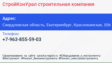 СтройКонУрал, строительная компания по адресу Свердловская область, Екатеринбург, Краснокамская, 106 в дальнейшем Организация, размещена в следующих категориях: