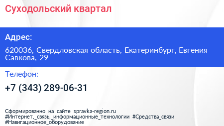 Суходольский квартал по адресу 620036, Свердловская область, Екатеринбург, Евгения Савкова, 29 в дальнейшем Организация, размещена в следующих категориях:
