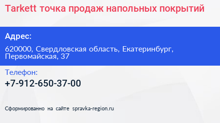 Tarkett, точка продаж напольных покрытий по адресу 620000, Свердловская область, Екатеринбург, Первомайская, 37 в дальнейшем Организация, размещена в следующих категориях: