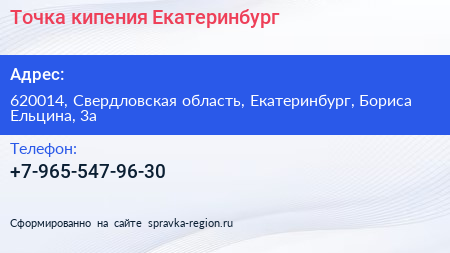 Точка кипения-Екатеринбург по адресу 620014, Свердловская область, Екатеринбург, Бориса Ельцина, 3а в дальнейшем Организация, размещена в следующих категориях: